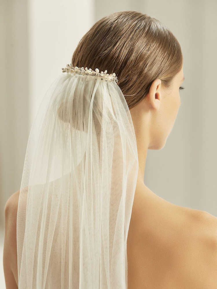 Sluierclip versierd met fonkelende steentjes en pareltjes.
