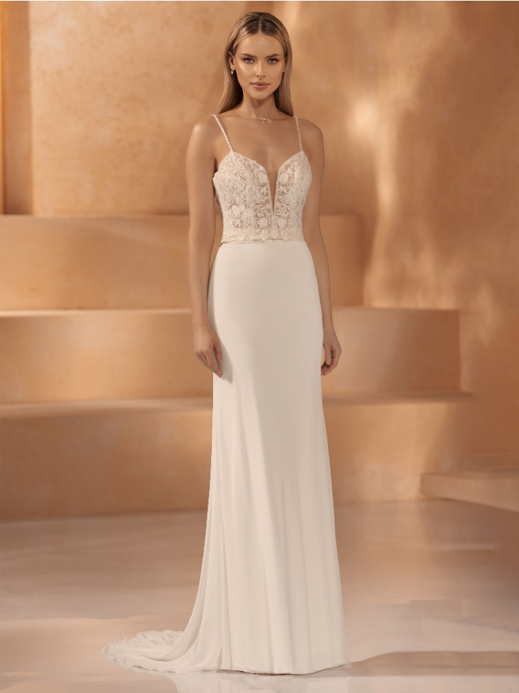 Deze schitterende bolero is perfect voor je trouwdag. De top is gemaakt van prachtig kant en is mouwloos. Het heeft bandjes en een sweatheart halslijn. De top sluit met een verborgen rits. Je kunt deze top perfect combineren met de Makira rok.