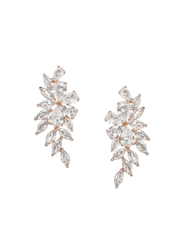 Deze prachtige oorbellen van Rosé Goud zijn een echte blikvanger, met een stralende combinatie van sprankelende Cubic Zirconia stenen. De roségouden plating voegt een luxe touch toe aan uw trouwoutfit en zorgt ervoor dat u straalt op uw speciale dag. Met een lengte van 3,5 cm zijn ze ook verkrijgbaar in Zilver.