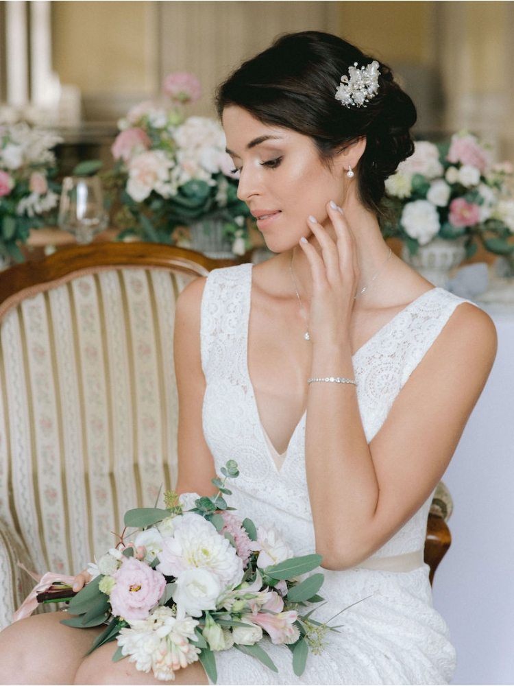 Prachtige bruids-haaraccessoire met een zilveren afwerking van G.Westerleigh. Handgemaakt en versierd met kostbare rhinestones, zilveren bladeren en ivoorkleurige nepperlen. Deze kam is vrij van nikkel en lood, waardoor het gemaakt is van niet-allergene materialen. Perfect voor de bruid die elegantie en stijl waardeert!
