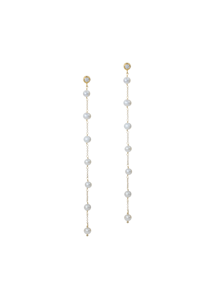 Het is JOUW dag, JOUW sieraden - en deze extravagante, extra lange oorbellen zijn ontworpen om een onvergetelijk statement te maken op je bruiloft. Met een fonkelende kristallen stud en zeven zoetwaterparels aan elke kant, zal dit eigentijdse stuk, ondanks het minimalistische ontwerp, outfits zoals een little black dress of een "jeans en witte blouse" look lang na de bruiloft blijven verbeteren.