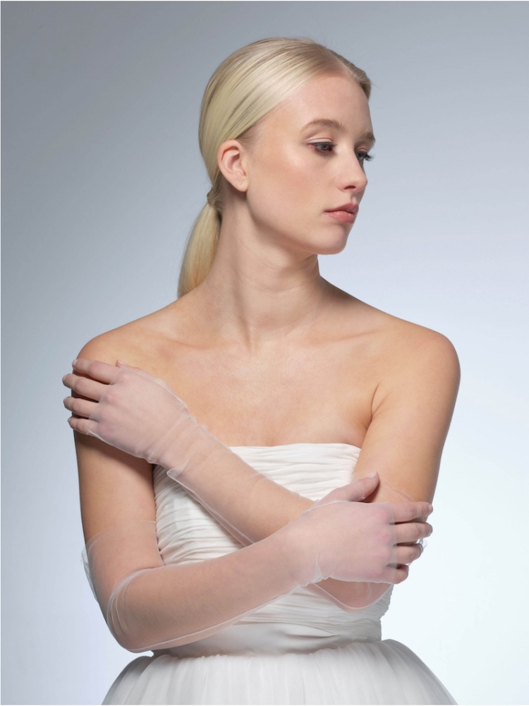 Til je bruidslook naar een hoger niveau met de Essential Collection trouwhandschoenen van Poirier. Deze tijdloze, vingerloze handschoenen zijn vervaardigd van zachte ivoorkleurige tule en voegen een vleugje elegantie toe aan je trouwoutfit. Met een luxueuze lengte van 54 cm (21,2 inch) completeren de Poirier GL-76006 Handschoenen moeiteloos een scala aan jurken, waardoor je je op je speciale dag een ware verschijning van gratie voelt.