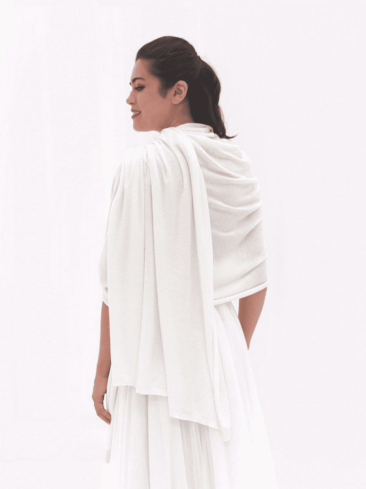 De ivoorkleurige stola S189 is precies wat je zoekt! Deze stola is gemaakt van een samengestelde stof die bestaat uit 16% wol, 20% acryl, 20% nylon en 44% polyester. De afmetingen van deze stola zijn 240 cm x 80 cm. De neutrale kleur en het ontwerp maken van deze sjaal de ultieme trouwaccessoire.
