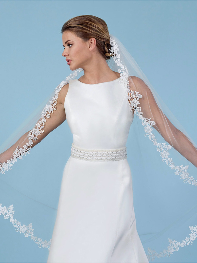 Soft tule sluier versierd met gehaakte bloemetjeskant.